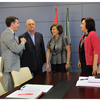| El presidente de la Federación Andaluza de Empresas Cooperativas Agrarias, FAECA-Granada, Gregorio Núñez, y el director de esta Federación provincial, Gustavo Ródenas han mantenido esta mañana una reunión con la delegada del Gobierno andaluz en Granada, María José Sánchez y delegada territorial de Agricultura, Pesca y Medio Ambiente en Granada, Sandra García Martín, para abordar diferentes asuntos de relevancia para las cooperativas agroalimentarias. |