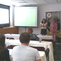 | Dentro de las actividades promocionales desarrolladas en el marco de Granada Gourmet, la denominación de origen Montes de Granada celebró 28 de septiembre una cata de aceite de oliva dirigida por la jefa del panel de cata de la denominación de origen, Maria Luisa Lorenzo Tovar. |