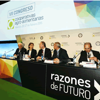 | |  | | El congreso fue inaugurado por Ángel Villafranca, José Vicente Torrent, Luis Rodríguez González, Isabel García Tejerina y Alberto Fabra. / Óscar OrzancoEl VII Congreso de Cooperativas Agro-alimentarias de España celebrado en Valencia el 26 y 27 de febrero no defraudó. El encuentro, que en esta ocasión tenía una especial relevancia por coincidir con el XXV aniversario de la organización, se celebró bajo el lema “Razones de Futuro”. Y durante dos días, más de mil asistentes abordaron sin complejos y de forma realista las fortalezas y los retos del cooperativismo para los próximos años en una cita que se estructuró en tres grandes ejes: innovación, internacionalización e integración. |  | | Y precisamente sobre este último punto, de las diversas opiniones escuchadas en el transcurso del congreso a directivos de cooperativas, expertos del sector agroalimentario y representantes políticos, se desprende que el cooperativismo español ha asumido que es necesario concentrar la oferta para que este modelo económico siga siendo competitivo. Las cooperativas agroalimentarias españolas quieren ganar fuerza y poder de negociación en un mercado cada vez más globalizado a través de fusiones y acuerdos para afrontar retos como la innovación o la internacionalización. Los representantes de las cooperativas han asimilado y tienen claro que la integración es una prioridad, al margen de las ayudas y de la legislación que puede llegar de la administración europea, española o de las comunidades autónomas para fomentar las fusiones. Más aún cuando este tipo de empresas en España distan mucho del tamaño que tienen sus homólogas en la Unión Europea. |  | | Para cumplir con el objetivo de la integración, el congreso se convirtió en un excelente escenario para intercambiar opiniones y avanzar en acuerdos para concentrar la oferta y mejorar la posición de las cooperativas españolas y la de sus socios en la cadena de valor. De hecho, durante la celebración del encuentro, Enrique de los Ríos, gerente de Unica Group, anunció que están manteniendo contactos con el Grupo AN para crear una entidad asociativa prioritaria. Se trata de la nueva figura que recoge la ley para liderar los procesos de fusión de entidades que operan en más de una comunidad autónoma. |  | | Inauguración |  | | El VII Congreso de Cooperativas Agro-alimentarias de España fue inaugurado por el presidente de la organización, Ángel Villafranca, acompañado del presidente de Cooperatives Agro-alimentàries de la Comunitat Valenciana, José Vicente Torrent; el presidente del Banco de Crédito Cooperativo-Cajamar, Luis Rodríguez González; la ministra de Agricultura, Alimentación y Medio Ambiente, Isabel García Tejerina y el presidente de la Generalitat Valenciana, Alberto Fabra. |  | | Ángel Villafranca destacó la fortaleza del entramado cooperativo como dinamizador de la economía española, del medio rural y como modelo generador de empleo. El sector cooperativo agroalimentario aglutina a más de 3.800 empresas formadas por más un millón de socios productores, con una facturación de más de 25.000 millones de euros, el 60% del valor de la producción agraria española y el 30% del valor de la producción bruta de la industria alimentaria. |  | | “A pesar de la crisis económica, las cooperativas agroalimentarias españolas han mantenido durante estos últimos años, una posición estable y sólida, incrementando su facturación un 23% desde 2007 y un 8% el número de empleos directos, hasta alcanzar un total de 100.000 personas, demostrando así que soportan mejor las circunstancias adversas que otro tipo de fórmulas empresariales”, señaló el presidente de Cooperativas Agro-alimentarias de España. |  | | Además de destacar el vigor del cooperativismo, Ángel Villafranca remarcó que “un cooperativismo fuerte y organizado influye decisivamente en la remuneración que percibe el socio. Hay que avanzar para lograr cumplir el objetivo de la integración, porque progresar en la concentración de la oferta es el futuro. Además, en nuestras cooperativas debemos ser capaces de innovar cada día. La fortaleza actual del cooperativismo se debe, en buena parte, a que hemos sabido internacionalizarnos”. |  | | El presidente de Cooperativas Agro-alimentarias defiende la integración de estas empresas, acompañada de una decidida apuesta por la innovación, para “ganar músculo” y contar con dimensión adecuada y productos diferenciales para competir en los mercados globalizados.