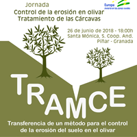 | |  | | El Grupo Operativo andaluz formado por Cooperativas Agro-alimentarias de Andalucía-Granada, Paisajes del Sur SL, Universidad de Granada, Diputación provincial y cooperativa Santa Mónica de Píñar (Granada), junto a cooperativas de Jaén y Córdoba, dedicado al estudio de sistemas que reduzcan la erosión en el cultivo del olivar celebrará la Jornada "TRAMCE: Control de la erosión en olivar mediante el tratamiento de cárcavas”, el próximo martes, 26 de junio, en la Cooperativa Santa Mónica de Píñar a las 18 horas. |  | | Este grupo de trabajo se centra en el estudio de técnicas agronómicas encaminadas al control de las cárcavas, mediante la incorporación de biorrollos (sistemas buffers) y sistemas de fertilización. Durante dos años, la investigación se lleva a cabo en fincas de experimentación facilitadas por productores de las cooperativas. La experiencia buscará establecer métodos agronómicos que frenen los efectos de la erosión, manteniendo el suelo fértil, con calidad de nutrientes y un nivel óptimo de aprovechamiento de los recursos hídricos. |  | | En esta charla, el Grupo Operativo explicará a los agricultores los objetivos del proyecto de investigación. El desarrollo de este grupo operativo esta dentro del marco del Programa de Desarrollo Rural de la Junta de Andalucía 2014-2020, financiado por la Junta de Andalucía y por el Fondo Europeo Agrícola de Desarrollo Rural, según la Orden de 28 de julio de 2016.